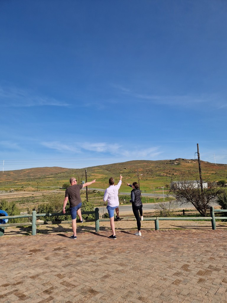 As we sped up through Western Cape and into Northern Cape, the landscape went from very green to mountainous and finally to desert as far as the eye could see. Kevin kept up a patter about the types of rocks and vegetation that we were seeing (often being corrected by Gavin) which could only be cut off by yet ANOTHER game of ‘Who Wants to be a Millionaire?’ read out from Martin’s phone. All four of us were millionaires by the time we got to Steinkopf, 80km from the Namibian border and where the road divides… We were able to spend our winnings on 2 trips to the loo, a ‘roostekoek’ (like a stotty filled with grated cheese, butter & bacon!) and a hand-made catapult for Gavin (“Baboon scarer!”).