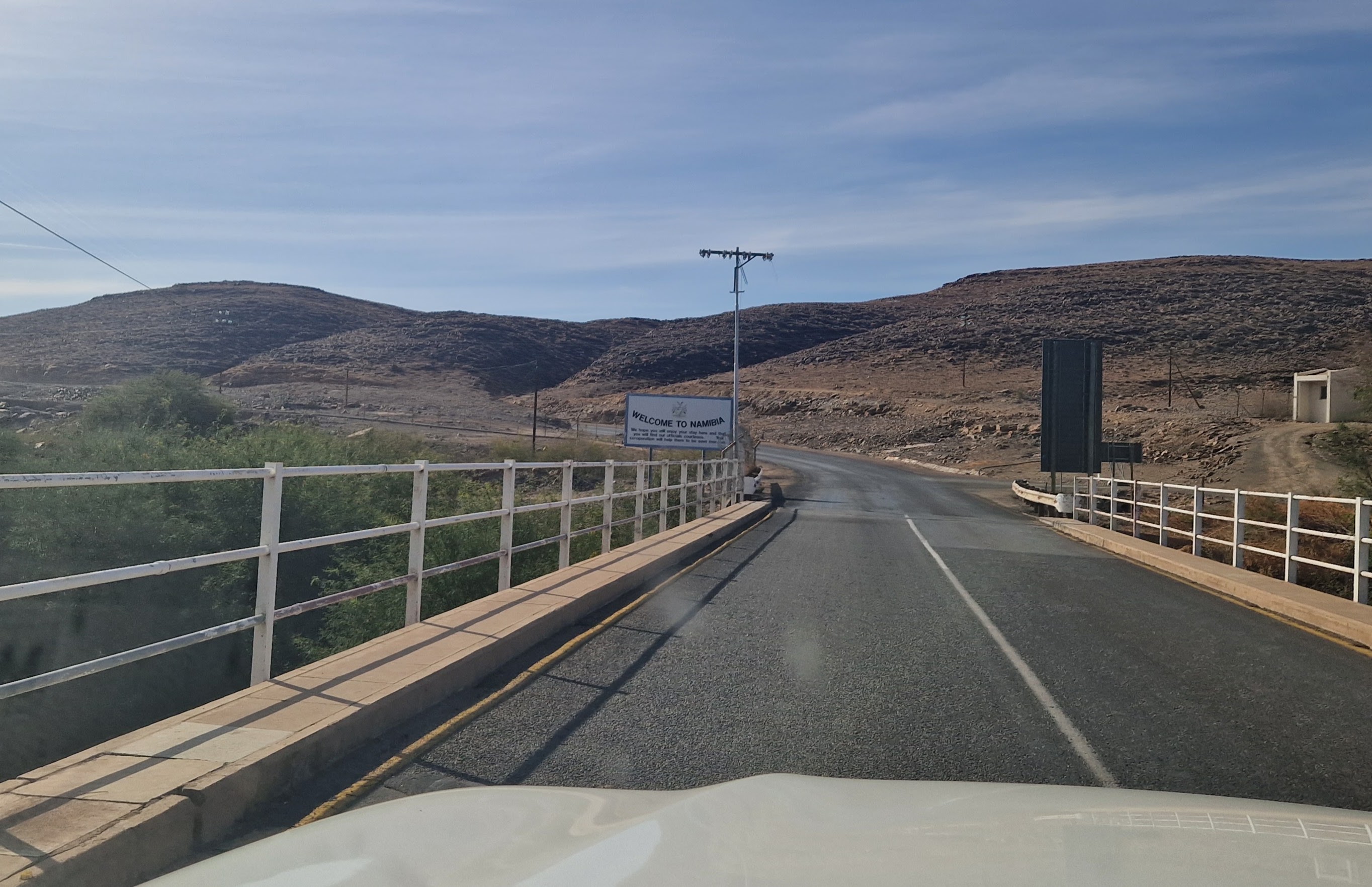 In the end, despite tensions running high, the border crossing was fairly stress-free. About 8 forms each to fill in and the necessity of demonstrating to both the S.African and Namibian border police that we hadn’t stolen our hire car, and we were through.