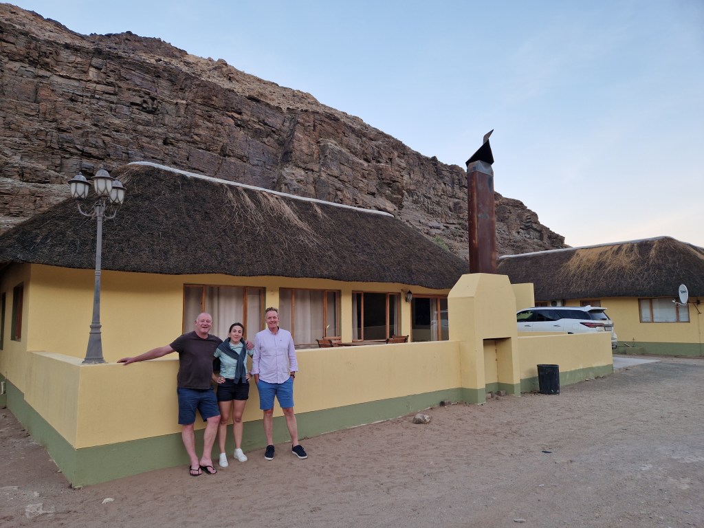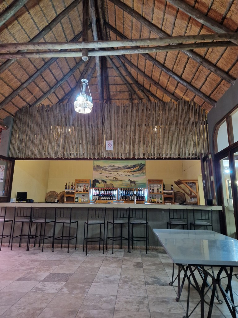 In Ai-Ais there is a campsite, some ‘chalets’, a bar, a restaurant and a hot springs swimming pool. We checked in to our chalet (2 bedrooms, 4 adults.. the first demonstration of Kevin’s stellar organisational skills.. he was clearly looking for someone to spoon and there weren’t any takers) and made a beeline for the bar.
