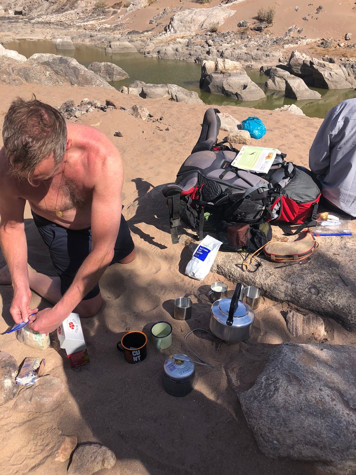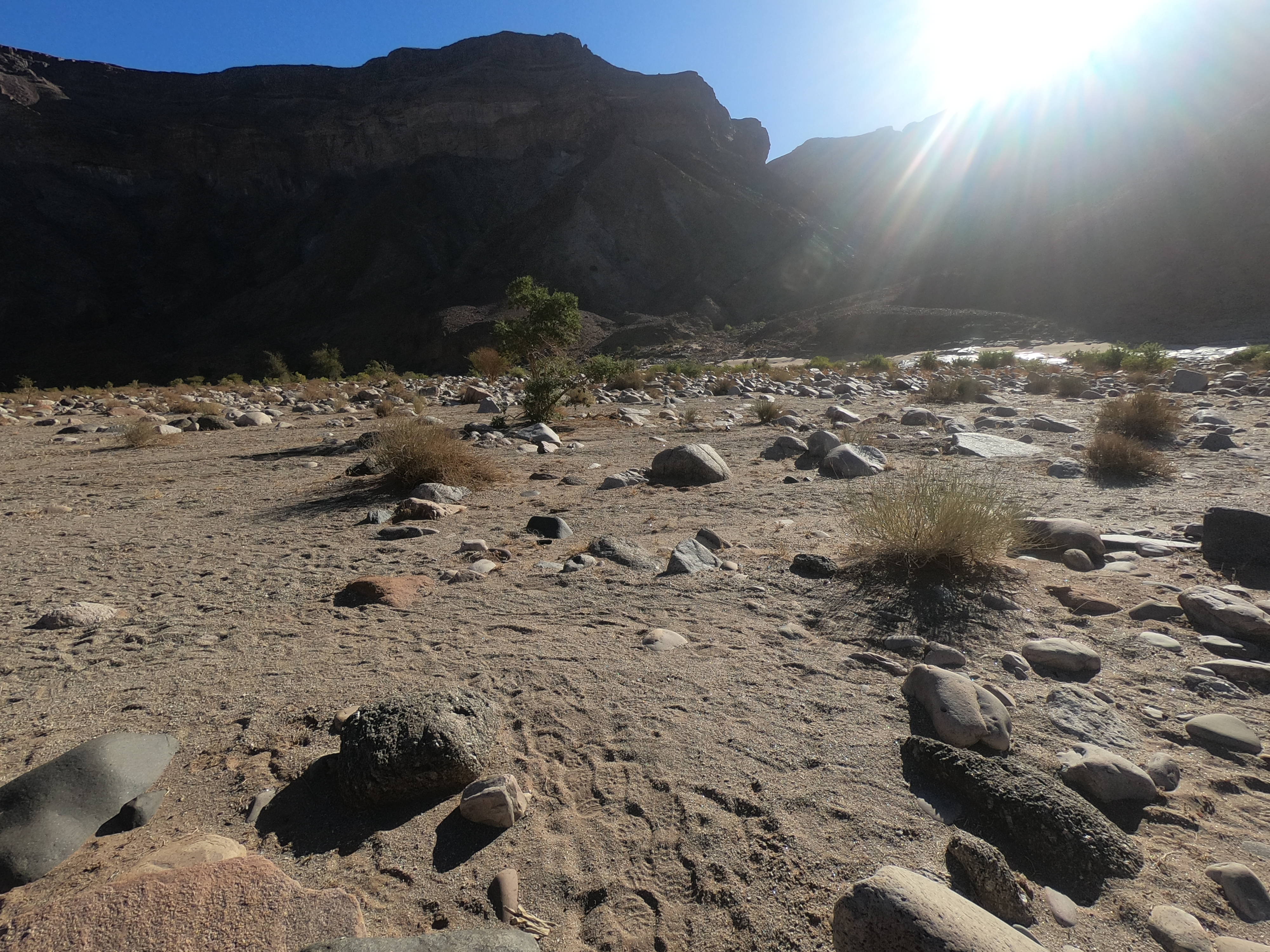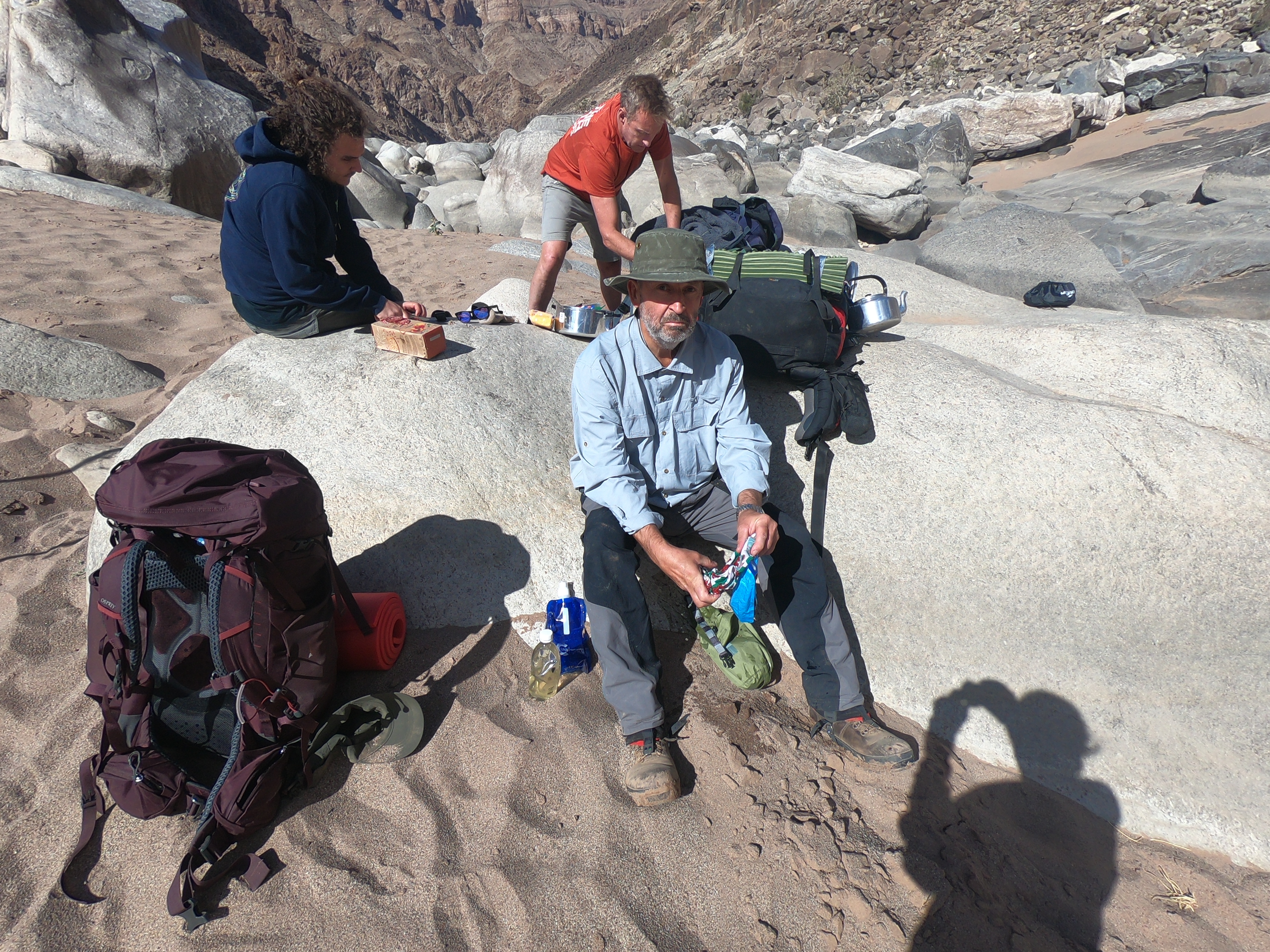 It was another day of very slow progress, mainly scrambling over boulders but with a healthy dose of sand too, biên sur. The landscape didn’t change at all…sand, rocks and the canyon walls… not that we were able to take in the landscape much as you were just constantly looking at where your next footstep was. It was as boring as it was difficult and we were achieving a pace of about 2km/hour. It was not looking good for our flight home.