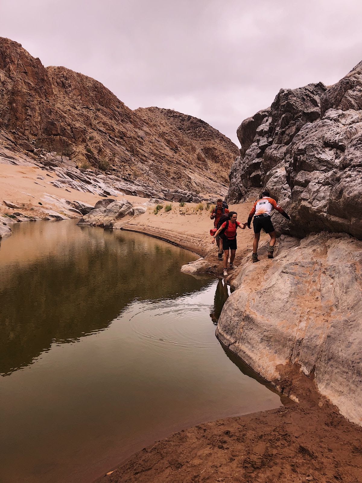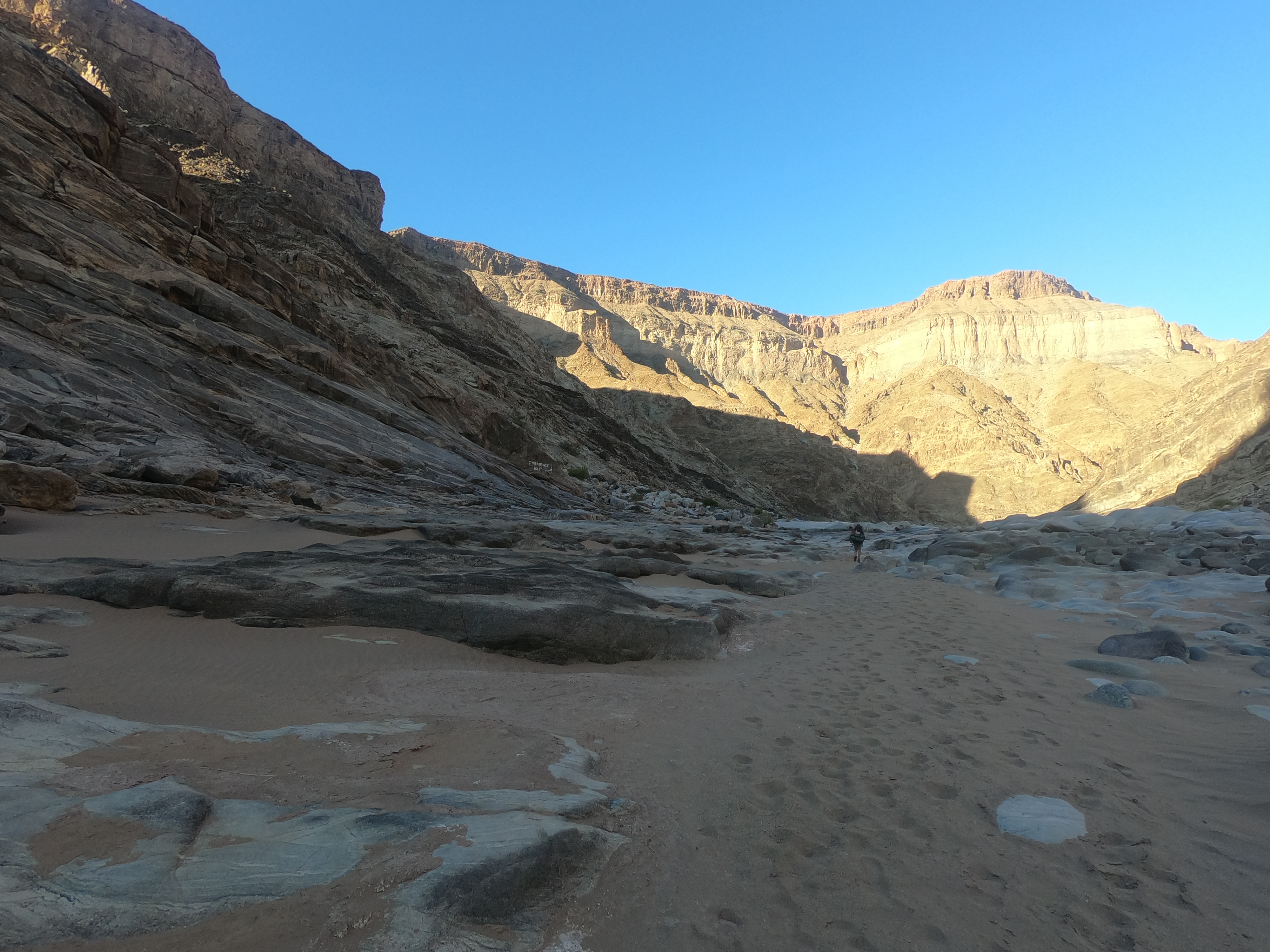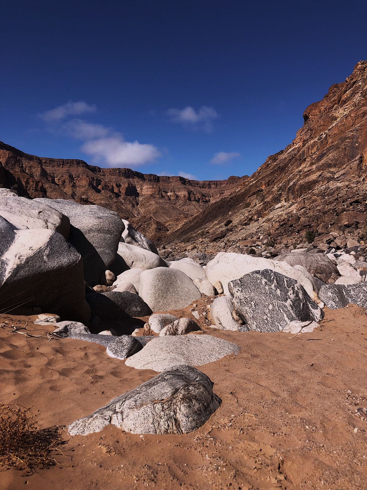 It was another day of very slow progress, mainly scrambling over boulders but with a healthy dose of sand too, biên sur. The landscape didn’t change at all…sand, rocks and the canyon walls… not that we were able to take in the landscape much as you were just constantly looking at where your next footstep was. It was as boring as it was difficult and we were achieving a pace of about 2km/hour. It was not looking good for our flight home.